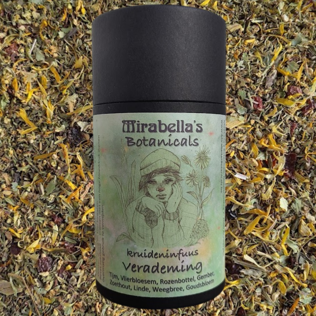 Mirabella's nieuwste Kruidenthee! Voor als gure wind en regen je weerstand onderuit gehaald hebben, je keel verzachting kan gebruiken en je zakdoek overuren draait.
